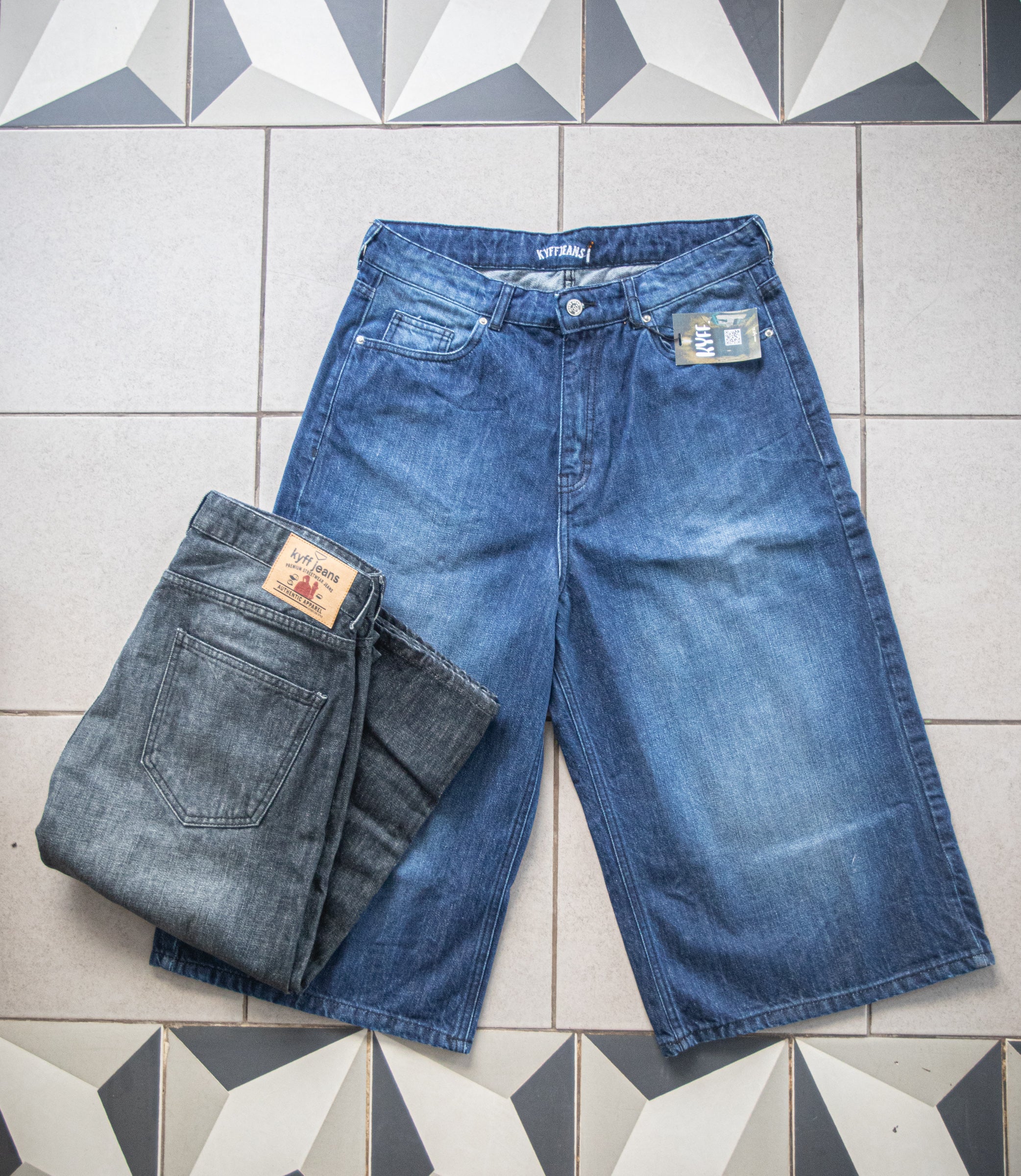 Baggy jeans jort for streetwear by KYFF™,these are the perfect hybrid between old school vibe and street drip,made.Made with high-quality materials, they are durable and designed to last. Elevate your street style with these trendy jeans that are sure to turn heads wherever you go. Shop now and experience the ultimate urban fashion statement!